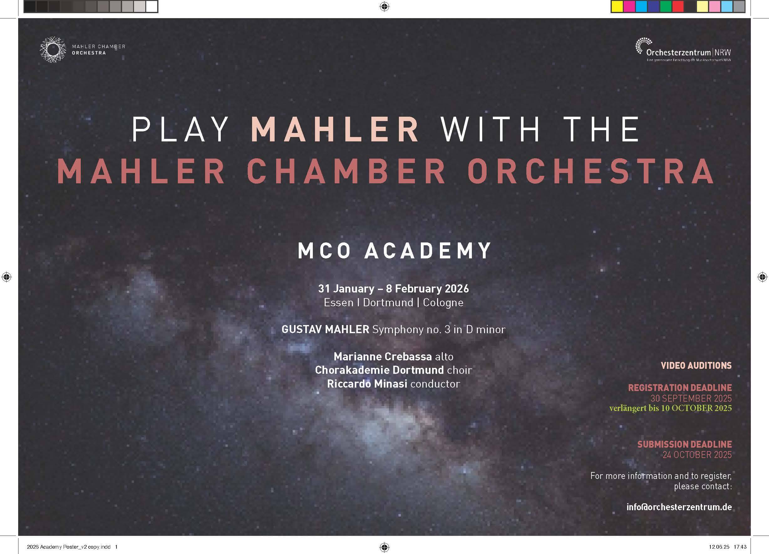 ACHTUNG: Der Anmeldeschluss für die MCO Academy wurde verlängert! Bitte senden Sie Ihre Bewerbungsunterlagen bis zum 10.10.2025 an das Orchesterzentrum|NRW.
